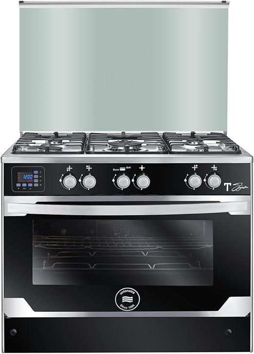 بوتاجاز غاز تي سيجنتشر يونيون اير، 5 شعلة، 60×90 سم، امان كامل، مروحة، C69SS-GC-447-ITSF-2W-TS-AL – فضي اسود